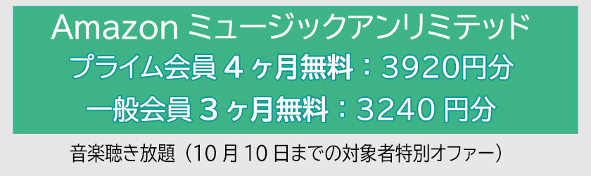 Amazon Musicアンリミテッド4ヶ月無料(~10/10)
